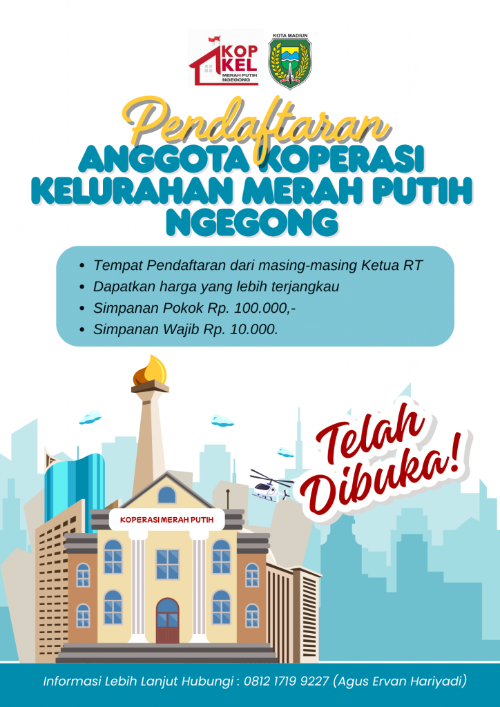 Dalam rangka meningkatkan kesejahteraan dan kemandirian ekonomi warga, Kelurahan Ngegong membuka pendaftaran anggota Koperasi Merah Putih.